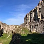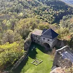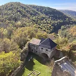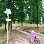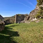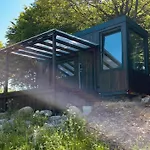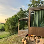 1のベッドル-ムのHrušov Lazy In Tinyヴィラは庭園の眺めに面しています. 別荘には1のバスル-ムと器具でいっぱいの台所が付いています.